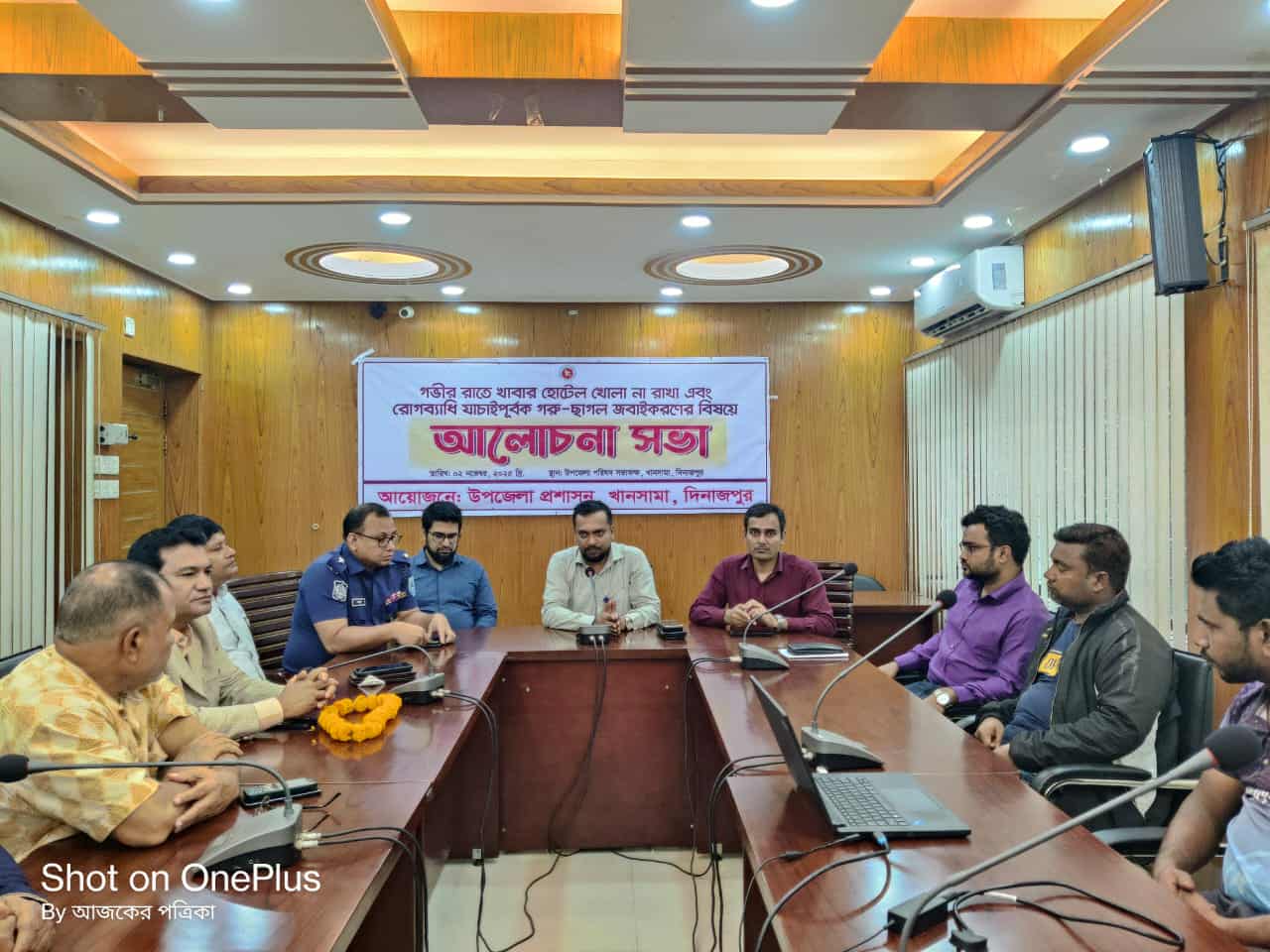 চৌধুরী নুপুর নাহার তাজ,দিনাজপুর জেলা প্রতিনিধি।।জনস্বাস্থ্য রক্ষায় স্বাস্থ্যসম্মত মাংস বিক্রয় নিশ্চিতকরণ এবং গভীর রাতে খাবারের দোকান খোলা রাখার বিষয়ে সচেতনতা সৃষ্টির লক্ষ্যে দিনাজপুরের খানসামা উপজেলায় ব্যবসায়ীদের সাথে এক মতবিনিময় সভা অনুষ্ঠিত হয়েছে।