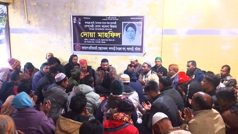ফজলার রহমান গাইবান্ধা থেকে ঃবিএনপি চেয়ারপার্সন ও গণতন্ত্রের জননী সাবেক প্রধানমন্ত্রী দেশনেত্রী বেগম খালেদা জিয়ার রুহের মাগফেরাত কামনায় দোয়া মাহফিল গাইবান্ধা জেলার পলাশবাড়ী উপজেলা স্বেচ্ছাসেবক দলের উদ্যোগে অনুষ্ঠিত হয়েছে।