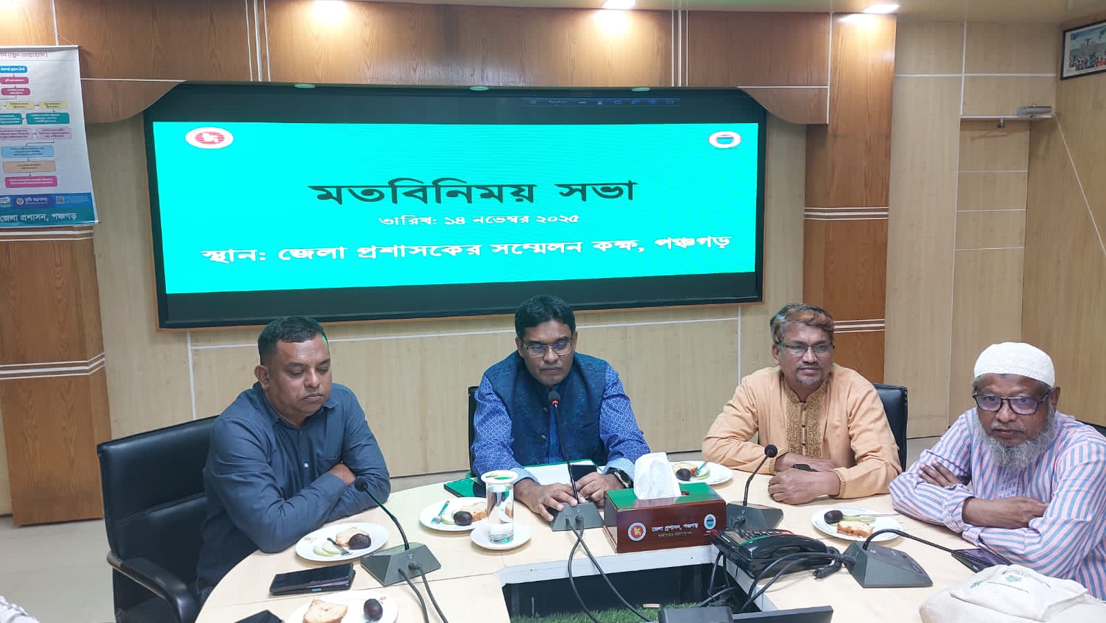 পঞ্চগড় প্রেসক্লাবের সভাপতি মোশাররফ হোসেনের সভাপতিত্বে অনুষ্ঠিত মতবিনিময় সভায় প্রেসক্লাবের সাধারণ সম্পাদক সরকার হায়দার, জ্যেষ্ঠ গণমাধ্যমকর্মী শহীদুল ইসলাম শহীদ, সফিকুল আলম, লুৎফর রহমান, সাইদুজ্জামান রেজা, আব্দুর রহিম, হাসিবুল ইসলাম, ইনসান সাগরেদ বক্তব্য দেন।