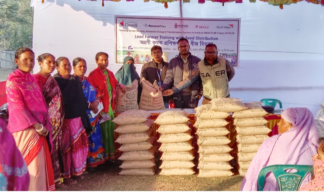রবিবার (২১ ডিসেম্বর) দুপুরে ঠাকুরগাঁওয়ের রাণীশংকৈল উপজেলার রাতোর ইউনিয়নের বাংলাগড় কলেজ মাঠে প্রশিক্ষণ ও বীজ বিতরণ করা হয়। অনুষ্ঠানটির আয়োজন করে ইএসডিও ও বাস্তবায়ন করে আন্তর্জাতিক খাদ্যনীতি গবেষণা ইনস্টিটিউট (IFPRI) হারভেস্ট প্লাস প্রোগ্রামের রিঅ্যাক্টস- ইন প্রকল্প।
