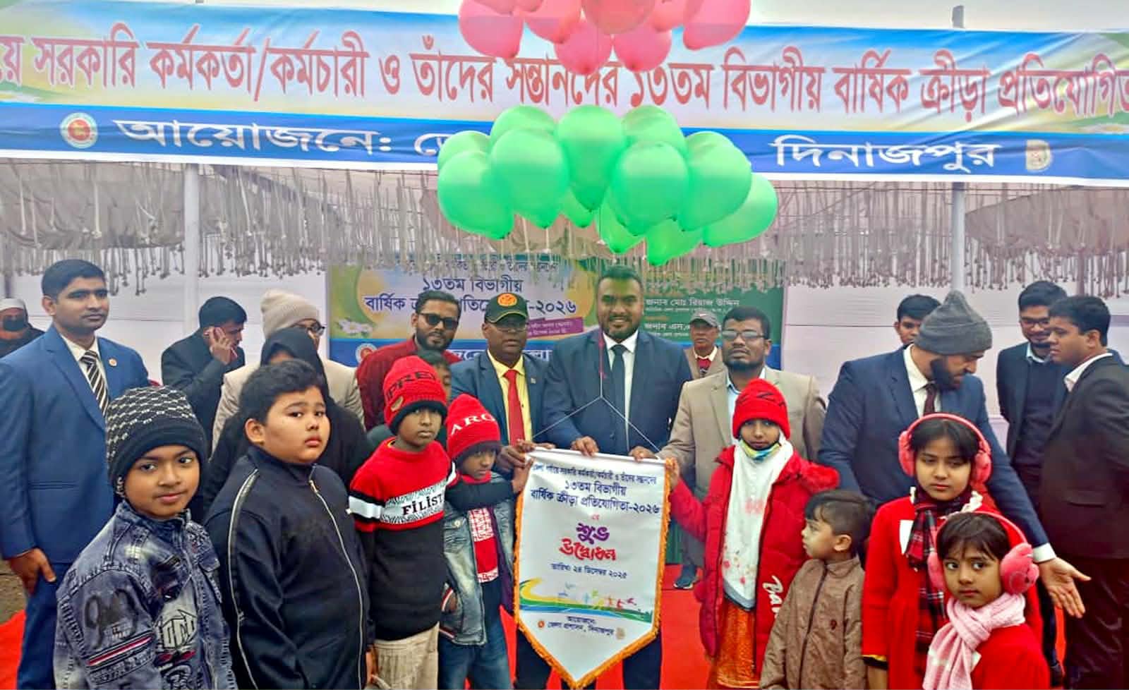 মোঃ জাহিদ হোসেন , দিনাজপুর প্রতিনিধি॥ ২৪ ডিসেম্বর-২০২৫ বুধবার সকালে দিনাজপুর গোর-এ- শহীদ ময়দানে (বড় মাঠ)দিনাজপুর জেলা প্রশাসনের আয়োজনে জেলা পর্যায়ে সরকারি কর্মকর্তা /কর্মচারী ও তাঁদের সন্তানদের ১৩তম বিভাগীয় বার্ষিক ক্রীড়া প্রতিযোগিতা -২০২৬ অনুষ্ঠিত হয়েছে।