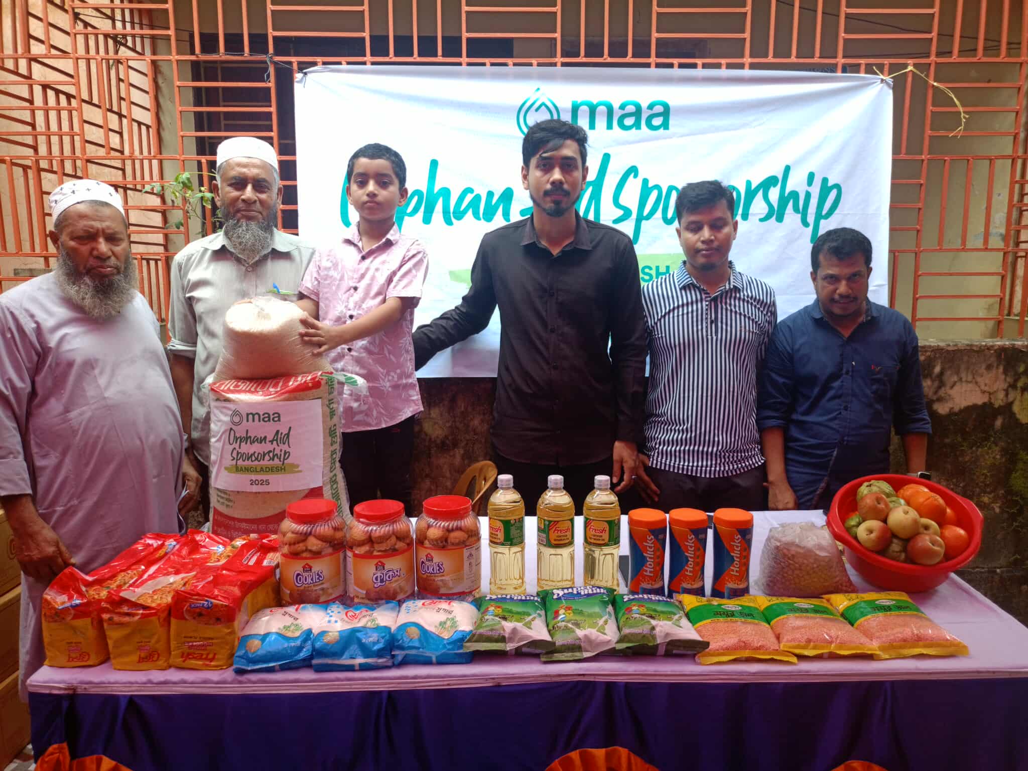 এসময় উপজেলার ৫-৭ বছর বয়সের তালিকাভুক্ত মোট ৩৬জন এতিম শিশুদের মাঝে জন প্রতি ৩০কেজি চাল, ৩কেজি মশুর ডাল, ৩কেজি চিনি, সয়াবিন তেল ৩লিটার, ১কেজি আপেল, ১কেজি কমলা, ১কেজি পেয়ারা, ২.২কেজি নুডলস, দেড় কেজি বাদাম, দেড় কেজি গুড়াদুধ,আড়াই কেজি বিস্কুট ও দেড় কেজি হেলিক্স বিতরণ করা হয়।