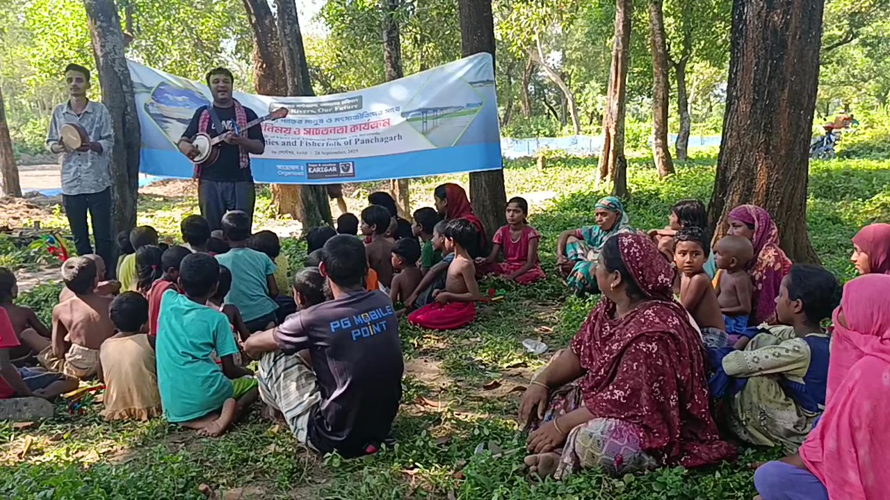 পঞ্চগড়ে শিশু ও নদী কেন্দ্রীক মৎস্যজীবীদের অংশ গ্রহণে গান, কবিতা আর আলোচনার মাধ্যমে বিশ্ব নদী দিবস উদযাপিত হয়েছে। রবিবার সকাল থেকে নদী পাড়ের বিভিন্ন গ্রামের সাধারন মানুষ এবং শিশুদের অংশ গ্রহণে দিবসটি উদযাপিত হয়। প্রাণ প্রকৃতি পরিবেশ এবং সাংস্কৃতিক উন্নয়ন বিষয়ক সংস্থা কারিগর এই কর্মসূচীর আয়োজন করে। সদর উপজেলার মিলন বাজার, রাজার পাট ডাঙ্গা গ্রামের তিনটি স্পটে এই কর্মসূচী আয়োজন করা হয়। কর্মসূচীর শুরুতে সদর উপজেলার চাওয়াই এবং করোতোয়া নদীর মাঝখানে অবস্থিত রাজার পাট ডাঙ্গা গ্রামে শিশুদের অংশ গ্রহণে একটি শোভাযাত্রা অনুষ্ঠিত হয়। শোভাযাত্রাটি গ্রামটির প্রধান রাস্তা প্রদক্ষিণ করে। শিশুরা তাদের নানা রকমের খেলনা নিয়ে শোভাযাত্রায় অংশ নেয়। পরে চাওয়াই নদীর তীরে বিস্তির্ণ বাগানে গান, কবিতা আর মতবিনিময় অনুষ্ঠান অনুষ্ঠিত হয়। কারিগরের নির্বাহী পরিচালক সরকার হায়দার এই অনুষ্ঠান সঞ্চালনা করেন। অনুষ্ঠানে গল্পে গল্পে নদী সম্পর্কে শিশুরা তাদের বিভিন্ন কথা ও কবিতা পাঠ করে। এসময় স্থানীয় নদী কেন্দ্রীক মৎস্যজিবী, নারী ও শিক্ষার্থীরা তাদের মতামত তুলে ধরে। অনুষ্ঠানে গান পরিবেশন করে বাউল রইস উদ্দিন ও শিমুল । বক্তব্য রাখেন কারিগরের পরিচালক মোস্তাক আহমেদ, প্রকল্প পরিচালক বদিউজ্জামান মিলন প্রমুখ । বিকেলে মিলন বাজারে আলোচনা ও সঙ্গীতানুষ্ঠান অনুষ্ঠিত হয়। কারিগরের নির্বাহী পরিচালক জানান পঞ্চগড়ের উপর দিয়ে বয়ে গেছে ৫০ টি ছোট বড় নদী। নদী কেন্দ্রীক পাথর বালির বিশাল অর্থনীতির সাথে প্রাকৃতিক মাছ ও জলসম্পদের বিশাল পটভূমিও আছে। কিন্তু নদীগুলো যেমন হারিয়ে যাচ্ছে সেই সাথে দেশীয় মাছও বিলুপ্ত হয়ে যাচ্ছে। এসব হচ্ছে মানুষের অপরিকল্পিত ও অসচেতনতার কারণে। তাই নদী পাড়ের মানুষের সাথে আমাদের এই আয়োজন। এই আয়োজনে আমরা আমাদের ভবিষ্যৎ প্রজন্মকেও সংযুক্ত করেছি।