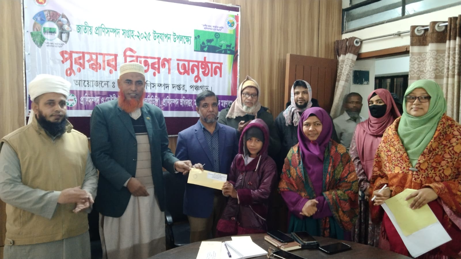 পঞ্চগড়ে জাতীয় প্রাণিসম্পদ সপ্তাহের বিভিন্ন প্রতিযোগিতায় বিজয়ী শিক্ষার্থীদের মাঝে পুরস্কার বিতরণ করা হয়েছে। প্রাণিসম্পদ অধিদপ্তরের প্রাণিসম্পদ ও ডেইরী উন্নয়ন প্রকল্প (এলডিডিপি)’র সহযোগিতায় ওই অনুষ্ঠানে আয়োজন করে জেলা প্রাণিসম্পদ দপ্তর। বৃহস্পতিবার সকালে জেলা প্রাণিসম্পদ দপ্তরের হলরুমে পুরস্কার বিতরণ অনুষ্ঠানে প্রধান অতিথি হিসেবে উপস্থিত ছিলেন জেলা মৎস্য কর্মকর্তা কে এম আব্দুল হালিম। জেলা প্রাণিসম্পদ অফিসার ডা. মো. নূরুল ইসলামের সভাপতিত্বে অনুষ্ঠানে বিশেষ অতিথি হিসেবে উপস্থিত ছিলেন জেলা ভেটেরিনারি হাসপাতালের ভেটেরিনারি অফিসার ডা. মো. আব্দুল কাদের, সদর উপজেলা প্রাণিসম্পদ অফিসার ডা. মরিয়ম রহমান ও সদর উপজেলা প্রাণিসম্পদ সম্প্রসারণ অফিসার ডা. মোছা. মিলি আরা। অনুষ্ঠানে সদর উপজেলার ব্যারিস্টার জমির উদ্দিন সরকার ইনিস্টিটিউট, জমিরন নেছা দাখিল মাদ্রাসা, পঞ্চগড় ১ নং মডেল সরকারি প্রাথমিক বিদ্যালয় ও রজলী খালপাড়া উচ্চ বিদ্যালয়ে অনুষ্ঠিত চিত্রাংকন প্রতিযোগিতা, রচনা প্রতিযোগিতা ও কুইজ প্রতিযোগিতায় বিজয়ী শিক্ষার্থীদের মাঝে পুরস্কার হিসেবে নগদ অর্থ প্রদান করা হয়। উল্লেখ্য, গত ২৬ নভেম্বর থেকে ২ ডিসেম্বর পর্যন্ত জেলায় জাতীয় প্রাণীসম্পদ সপ্তাহ উপলক্ষে বিভিন্ন কর্মসূচি পালন করে জেলা প্রাণিসম্পদ দপ্তর। #