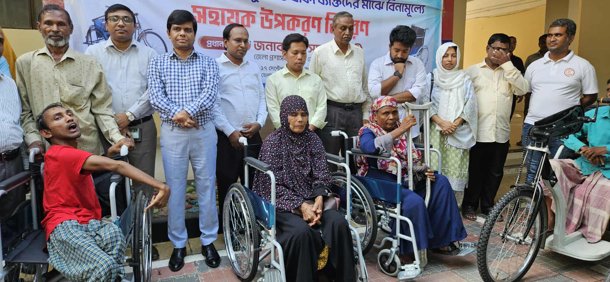 পঞ্চগড়ে প্রতিবন্ধী সহায়ক উপকরণ বিতরণ করা হয়েছে। বুধবার বিকেলে পঞ্চগড় জেলা প্রশাসক কার্যালয়ের সামনে প্রতিবন্ধী ও বিশেষ চাহিদা সম্পন্ন শিশু ও ব্যক্তিদের হাতে সহায়ক উপকরণ তুলে দেয়া হয়। প্রথম বারের মতো গণবিজ্ঞপ্তি প্রকাশ করে এবার দরিদ্র মানুষের আবেদন গ্রহণ ও যাচাই বাছাইয়ের মধ্য দিয়ে ৫ টি ট্রাই সাইকেল, ২১ টি হুইল চেয়ার, ৩ টি ওয়াকার, ২ জোড়া অক্সিলারি ক্রাচ এবং ১ টি এলবো ক্রাচ তুলে দেয়া হয়। জেলা প্রশাসন ও প্রতিবন্ধী সেবা ও সাহায্য কেন্দ্রের উদ্যোগে এই প্রতিবন্ধী সহায়ক উপকরণ বিতরণ করা হয়। প্রতিবন্ধী ও বিশেষ চাহিদা সম্পন্ন শিশুদের সমাজের মুল স্রোতধারায় নিয়ে আসতে সরকারি উদ্যোগে এভাবে সহায়ক উপকরণ বিতরণসহ নানা উদ্যোগ নেয়া হচ্ছে বলে জানান আয়োজকরা। অনুষ্ঠানে অতিরিক্ত জেলা প্রশাসক সুমন চন্দ্র দাশ, সদর উপজেলা নির্বাহী কর্মকর্তা জাকির হোসেন, প্রতিবন্ধী বিষয়ক কর্মকর্তা মোহাম্মদ শাহজাহান, জেলা শিশু বিষয়ক কর্মকর্তা আকতারুজ্জামান, জেলা কালচারাল অফিসার সৈয়দ জাকির হোসেন, এনসিপি পঞ্চগড় সদর উপজেলার প্রধান সমন্বয়কারী নয়ন তানবীরুল বারী, বৈষম্য বিরোধী ছাত্র আন্দোলনের সমন্বয়ক মোকাদ্দেসুর রহমান সানসহ সরকারি বেসরকারি প্রতিষ্ঠানের প্রতিনিধিরা উপস্থিত ছিলেন।