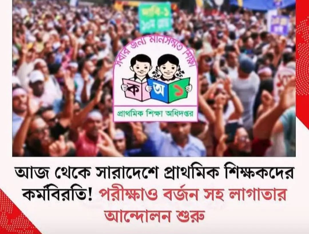 প্রাথমিক বিদ্যালয়ে পরীক্ষা বর্জনসহ রোববার (৩০ নভেম্বর) থেকে লাগাতার পূর্ণদিবস কর্মবিরতি কর্মসূচি চলবে বলে জানিয়েছে সহকারী শিক্ষকরা।