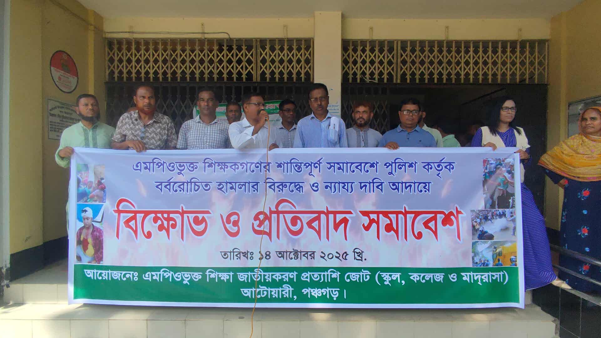 স্টাফ রিপোর্টার,পঞ্চগড় //এমপিও ভুক্ত শিক্ষক ও কর্মচারীদের ন্যায্য দাবী আদায়ের আন্দোলনে ঢাকায় শিক্ষকদের গ্রেফতার ও নির্যাতনের প্রতিবাদে আটোয়ারী উপজেলার শিক্ষক ও কর্মচারীবৃন্দের ব্যানারে মঙ্গলবার দুপুরে পঞ্চগড়ের আটোয়ারীতে বিক্ষোভ সমাবেশ করেছে উপজেলা শিক্ষক সমিতি।