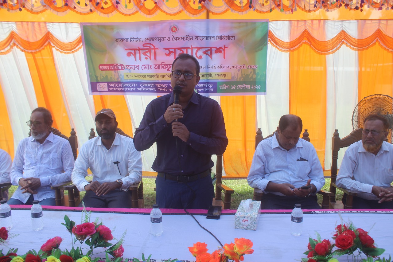 পঞ্চগড় সংবাদদাতা।। তারুণ্য নির্ভর, শোষণমুক্ত ও বৈষম্যহীন বাংলাদেশ বিনির্মাে পঞ্চগড়ের আটোয়ারী উপজেলার রাধানগর সরকারি প্রাথমিক বিদ্যালয় মাঠে সোমবার এক নারী সমাবেশ অনুষ্ঠিত হয়। সমাবেশে প্রধান অতিথি ছিলেন উপজেলা নিবার্হী অফিসার মো: আরিফুজ্জামান। সমাবেশে সভাপতিত্ব করেন জেলা তথ্য অফিসার উজ্জ্বল শীল।