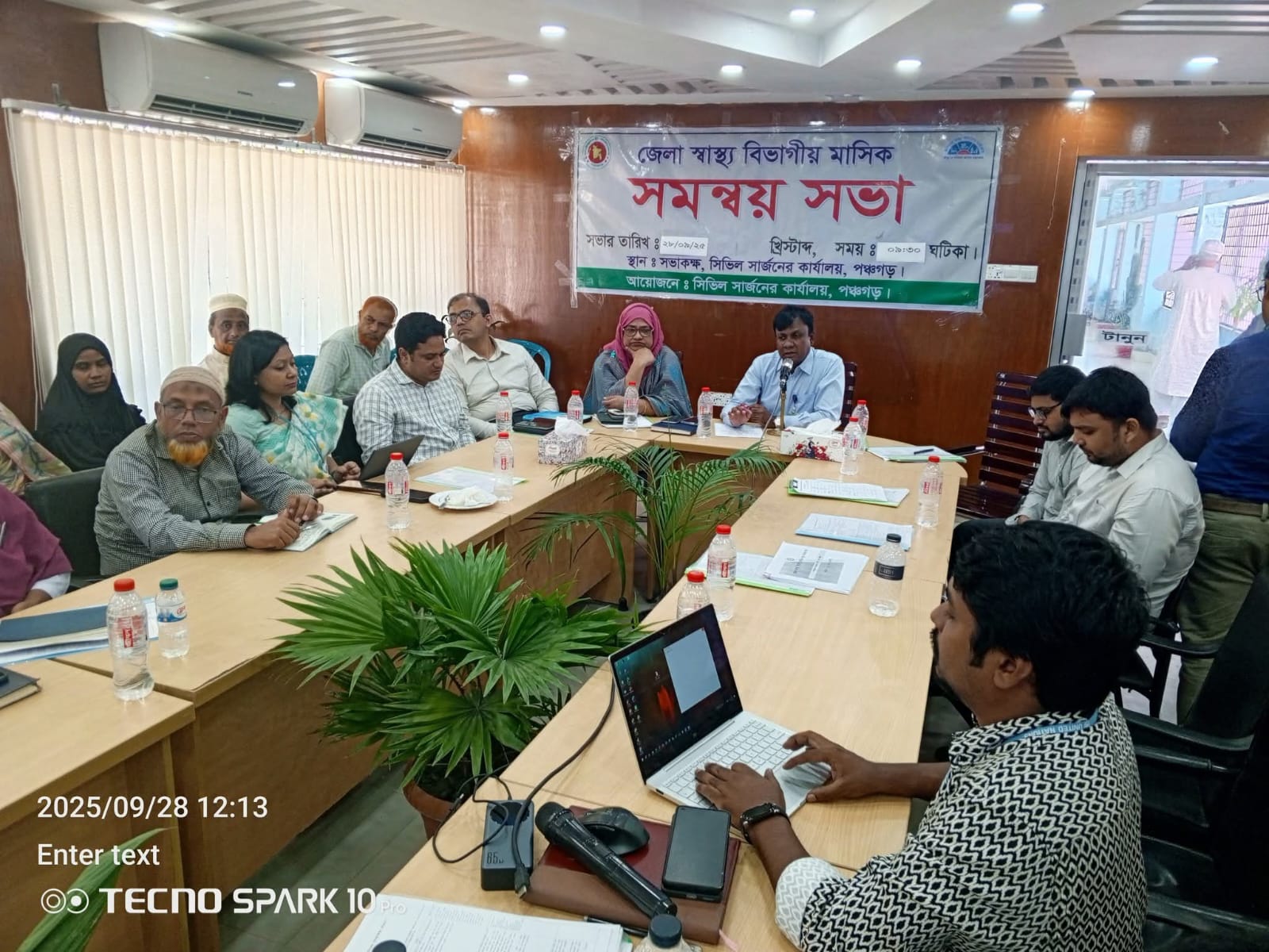 পঞ্চগড়ে সিভিল সার্জনের কার্যালয়ের সম্মেলন কক্ষে রবিবার আগস্ট মাসের স্বাস্থ্য বিভাগের মাসিক সমন্বয় সভা অনুষ্ঠিত হয়েছে। সভায় সভাপতিত্ব করেন জেলার সিভিল সার্জন ডা. মো. মিজানুর রহমান।