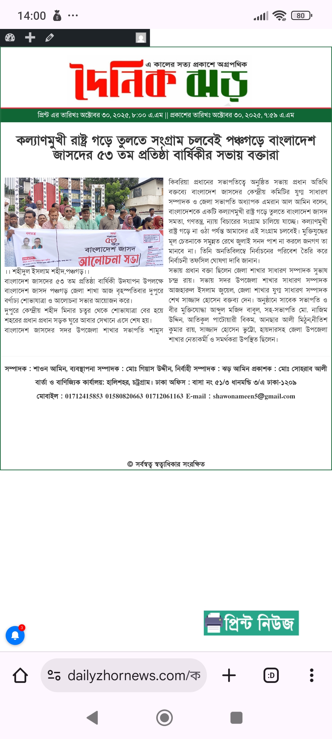 2. info@dailyzhornews.com : দৈনিক ঝড় :