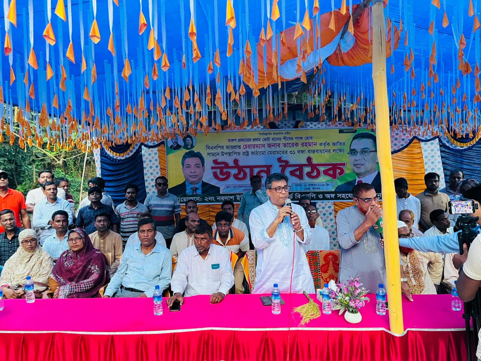 বাগমারা প্রতিনিধি।। বিএনপির ভারপ্রাপ্ত চেয়ারম্যান তারেক রহমান কর্তৃক ঘোষিত রাষ্ট্র কাঠামো মেরামতের রুপরেখার ৩১ দফা বাস্তবায়ন ও ধানের শীষ প্রতীকের পক্ষে জনমত গড়ে তোলার লক্ষ্যে রাজশাহীর বাগমারা উপজেলার নরদাশ ইউনিয়নের পূর্ব দৌলতপুর সরকারি প্রাথমিক বিদ্যালয় চত্বরে উঠান বৈঠক অনুষ্ঠিত হয়েছে।উঠান বৈঠকে প্রধান অতিথি হিসেবে উপস্থিত থেকে বক্তব্য প্রদান করেন আসন্ন জাতীয় সংসদ নির্বাচনে বাংলাদেশ জাতীয়তাবাদী দলের (বিএনপি) মনোনয়ন প্রত্যাশী উপজেলা বিএনপির সদস্য সচিব অধ্যাপক কামাল হোসেন।দীর্ঘ সময় পরে ঝামেলা বিহীন বিএনপি তাদের রাজনৈতিক কার্যক্রম পরিচালনা করছেন। সে কারণে বাংলাদেশ জাতীয়তাবাদী দল বিএনপির এই উঠান বৈঠকে নারী পুরুষ সকলের উপস্থিতি চোখে পড়ার মত।আগামী নির্বাচনে তারা ধানের শীষে ভোট প্রদান করবেন বলে জানা গেছে। বিশেষ করে ধানের শীষের মনোনয়ন প্রত্যাশী অধ্যাপক কামাল হোসেনের পক্ষে উঠান বৈঠক হাওয়ায় সেটি জনস্রোতে পরিণত হয়।শনিবার বিকেলে নরদাশ ইউনিয়নের ১নং ওয়ার্ড বিএনপি অঙ্গ ও সহযোগী সংগঠনের পক্ষ থেকে উঠান বৈঠকের আয়োজন করা হয়।উক্ত অনুষ্ঠানে সভাপতিত্ব করেন, বাগমারা উপজেলা বিএনপির সাবেক আহবায়ক ও নরদাশ ইউনিয়ন পরিষদের সাবেক চেয়ারম্যান মোশাররফ হোসেন।উঠান বৈঠকে বিশেষ অতিথি হিসেবে উপস্থিত ছিলেন, উপজেলা বিএনপির যুগ্ম আহবায়ক ও কাচারীকোয়ালীপাড়া ইউনিয়ন পরিষদের সাবেক চেয়ারম্যান মাষ্টার আব্দুল গাফফার।অতিথি হিসেবে অন্যান্যের মধ্যে উপস্থিত ছিলেন, বাগমারা উপজেলা বিএনপির আহবায়ক কমিটির সদস্য মাষ্টার ইউসুফ আলী, অধ্যাপক রফিকুল ইসলাম,সমির উদ্দীন,অধ্যাপক দুলাল হোসেন ,শাহিন রেজা, ভবানীগঞ্জ পৌর বিএনপি নেতা বিশিষ্ট ব্যবসায়ী আক্তারুল আলম, নরদাশ ইউনিয়ন বিএনপির সাধারণ সম্পাদক জুলফিকার আলী বাচ্চু,পানিয়া নরদাশ ডিগ্রি কলেজের ভারপ্রাপ্ত প্রিন্সিপাল ইউনিয়ন বিএনপির যুগ্ম সাধারণ সম্পাদক আব্দুর রাজ্জাক, সাংগঠনিক সম্পাদক আব্দুল মান্নান,সোনাডাঙ্গা ইউনিয়ন বিএনপির সাধারণ সম্পাদক আইনাল হক, রাজশাহী জেলা মহিলা দলের সহ-সভাপতি অধ্যাপিকা রিনা ইসলাম, ভবানীগঞ্জ পৌর মহিলাদলের সাবেক সভানেত্রী ও সাবেক কাউন্সিলর শাহানারা খাতুন,ভবানীগঞ্জ পৌরসভার ৫ নং ওয়ার্ড বিএনপির সভাপতি সিরাজ উদ্দীন দুলাল,হামিরকুৎসা ইউনিয়ন যুবদলের সাবেক সভাপতি বিশিষ্ট সাংবাদিক রাশেদুল হক ফিরোজ, রাজশাহী জেলা স্বেচ্ছাসেবক দলের যুগ্ম আহবায়ক মাষ্টার ইসাহাক আলী, উপজেলা যুবদলের সাবেক সাংগঠনিক সম্পাদক আতিকুর রহমান জর্জ,আব্দুল মতিন,বাগমারা উপজেলা স্বেচ্ছাসেবক দলের সাবেক সভাপতি জিল্লুর রহমান, সাবেক সাধারণ সম্পাদক মুনিরুজ্জামান মুনির প্রমুখ।উঠান বৈঠকে উপ