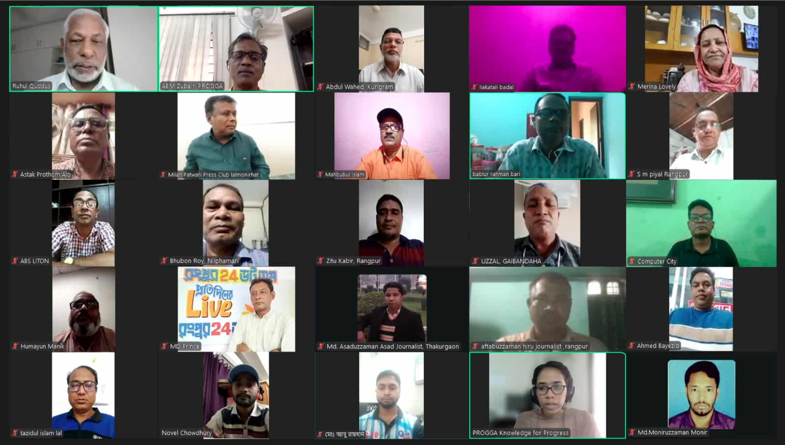 কর্মশালায় বক্তব্য রাখেন জিএইচআই'র বাংলাদেশ কান্ট্রি লিড মোহাম্মদ রুহুল কুদ্দুস, প্রজ্ঞা'র নির্বাহী পরিচালক এবিএম জুবায়ের, বাংলাদেশ সাংবাদিক উন্নয়ন সংস্থা'র কেন্দ্রীয় সদস্য ও জেলা শাখার সাধারণ সম্পাদক এবং ঠাকুরগাঁও জেলা রিপোর্টার্স ইউনিটির সাবেক সাধারণ সম্পাদক আসাদুজ্জামান আসাদ, সিনিয়র সাংবাদিক আল মামুন মামুন অর রশিদ, মেরিনা লাভলী প্রমুখ।