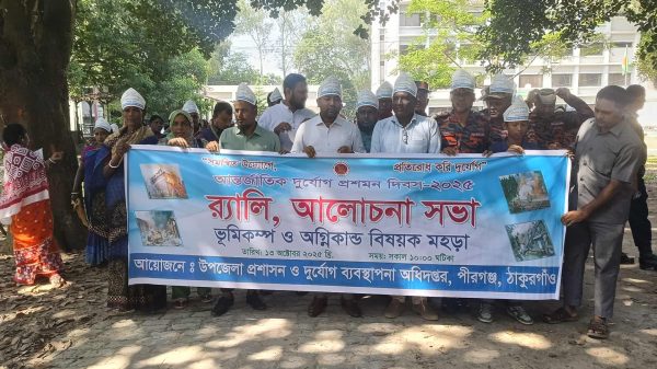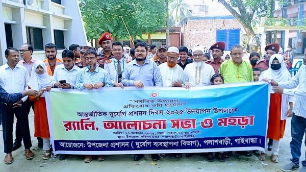 ফজলার রহমান গাইবান্ধা থেকে ঃ সমন্বিত উদ্যোগ, প্রতিরোধ করি দুর্যোগ”’ এ প্রতিপাদ্য বিষয় নিয়ে গাইবান্ধার পলাশবাড়ীতে আন্তর্জাতিক দুর্যোগ প্রশমন দিবস উপলক্ষে আলোচনা সভা, ভুমিকম্প ও অগ্নিকান্ড বিষয়ক সচেতনতামূলক মহড়ার মধ্য