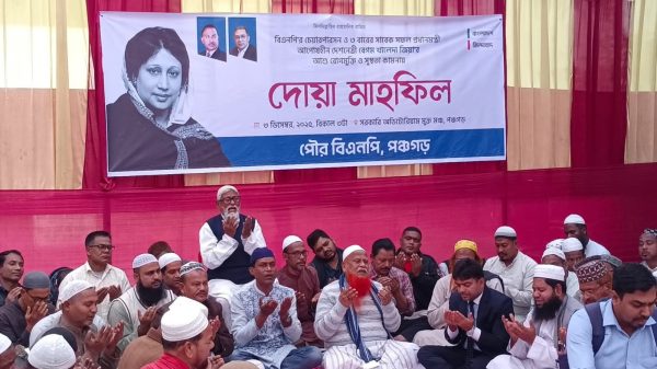 বিএনপির চেয়ারপান ও ৩ বারের সাবেক সফল প্রধানমন্ত্রী আপসহীন দেশনেত্রী বেগম খালেদা আশু রোগমুক্তি ও সুস্থতা কামনায় পঞ্চগড় পৌর বিএনপির দোয়া মাহফিল অনুষ্ঠিত